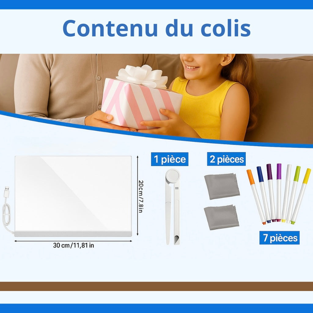 Offrez à vos enfants, le plaisir de voir leurs dessins s’animer grâce à une douce lumière LED. Chaque dessin devient un chef-d’œuvre lumineux .