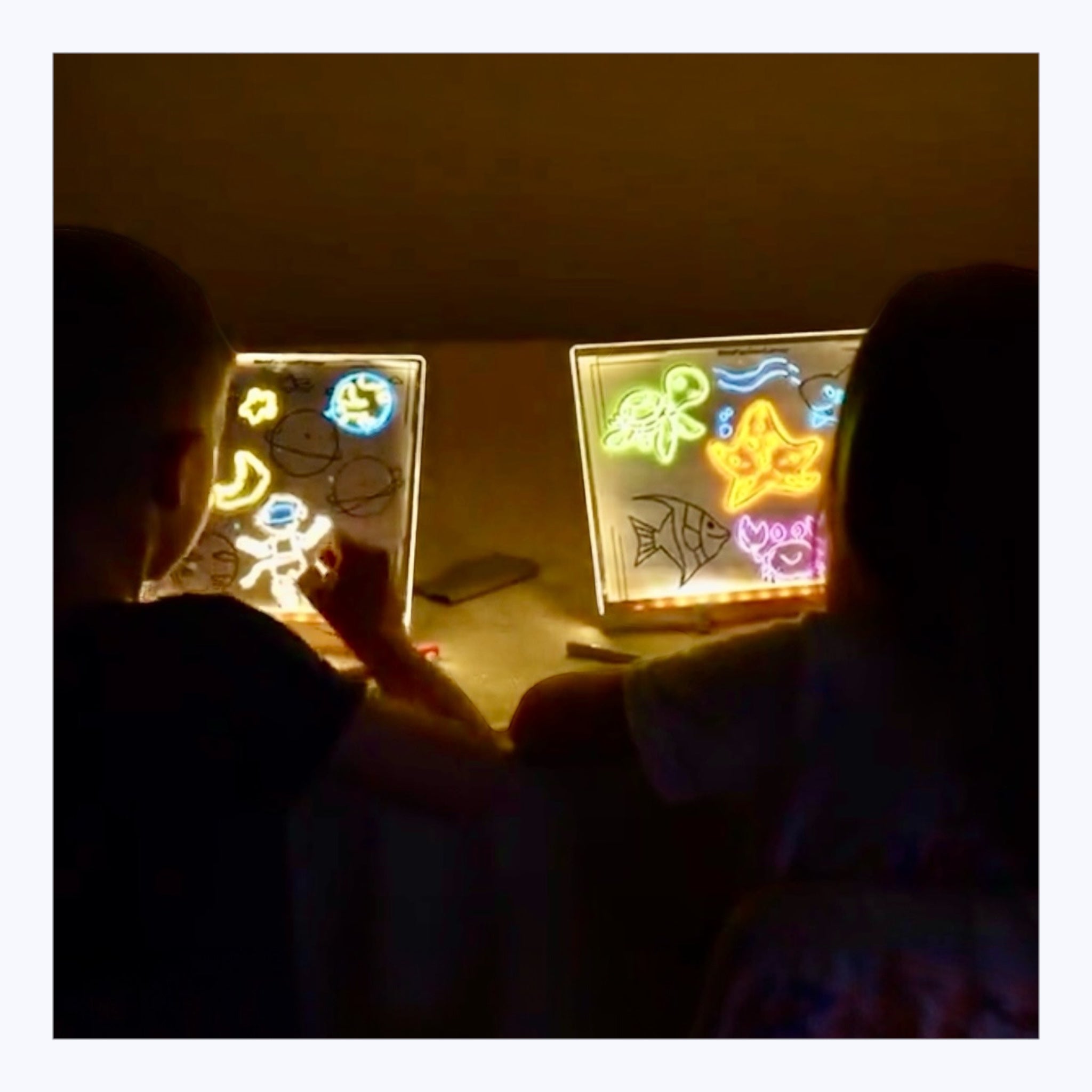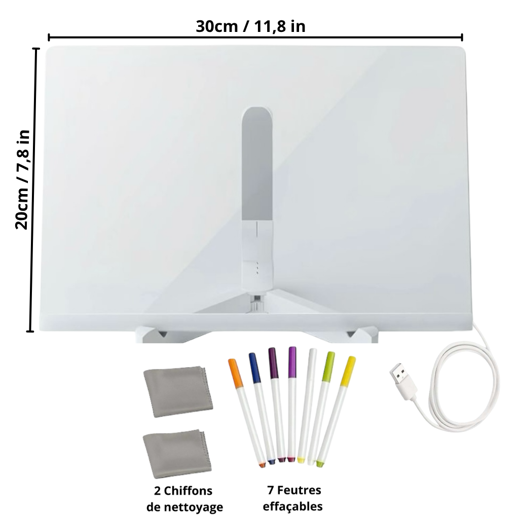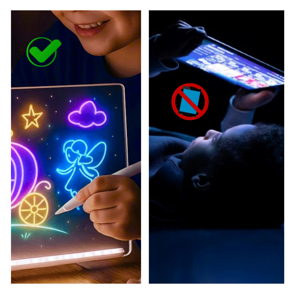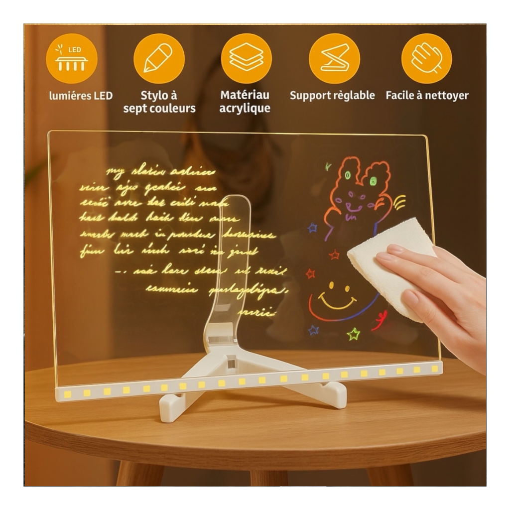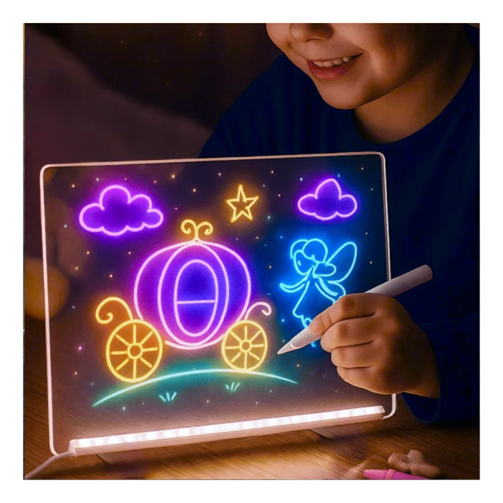 Offrez à vos enfants, le plaisir de voir leurs dessins s’animer grâce à une douce lumière LED. Chaque dessin devient un chef-d’œuvre lumineux .